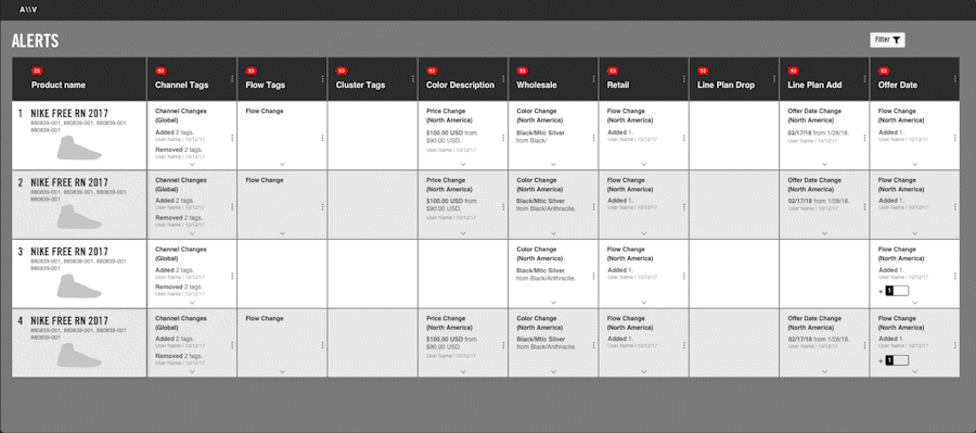 Users need to improve how they monitor and react to merchandise alerts data within one tool. Tedious and manual alternatives became the standard process as users outgrew the existing software’s original functionality.